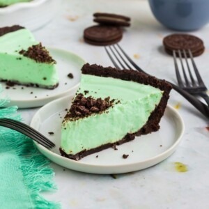 - Mint-Chocolate Chip: Stir mini chocolate chips or chopped Andes mints into the pie filling for extra chocolate and extra mint flavor.