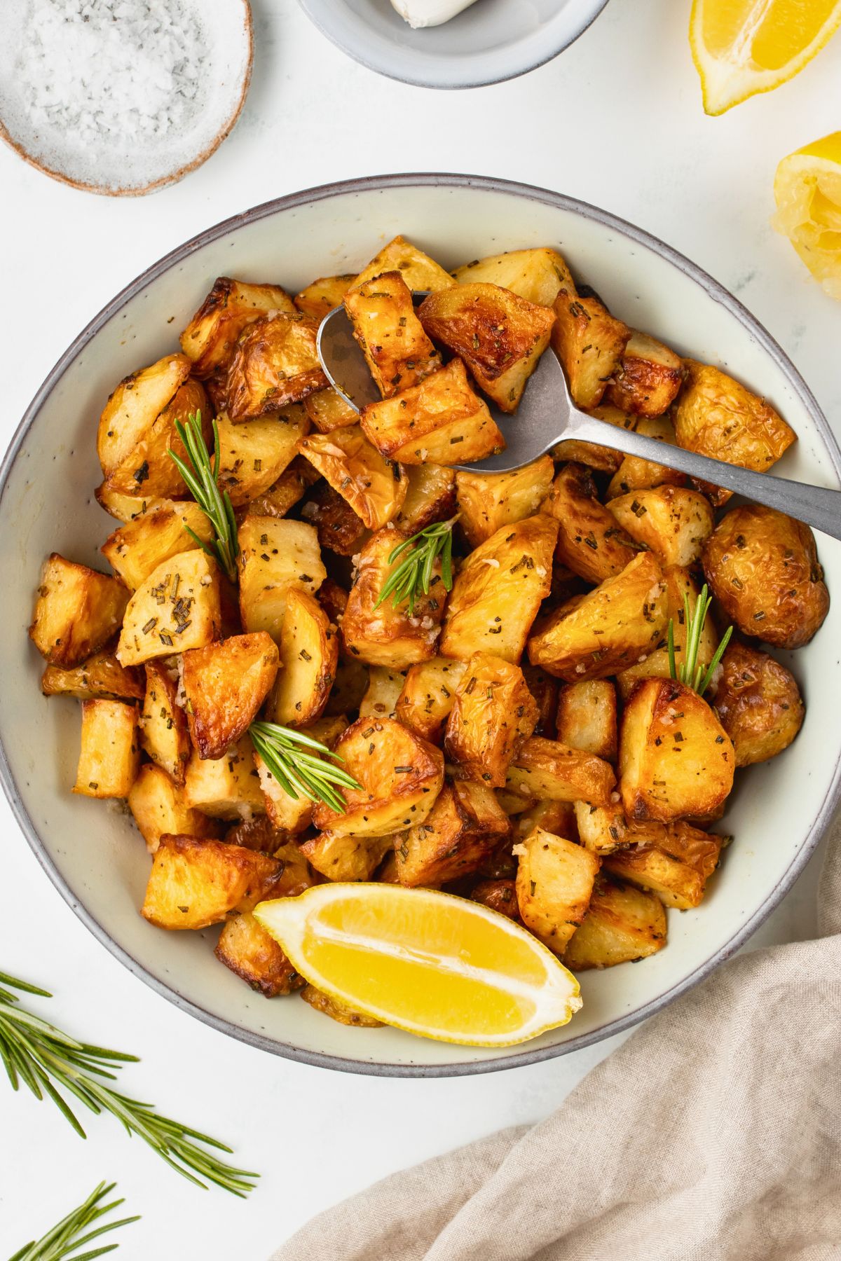 Golden brown and seasoned with zesty garlic, rosemary, and lemon flavors, these crispy roasted potatoes are as simple as they are delicious. The combination of rosemary and garlic gives them a classic, comforting taste, while the fresh lemon juice adds a refreshing flavor twist to every bite.